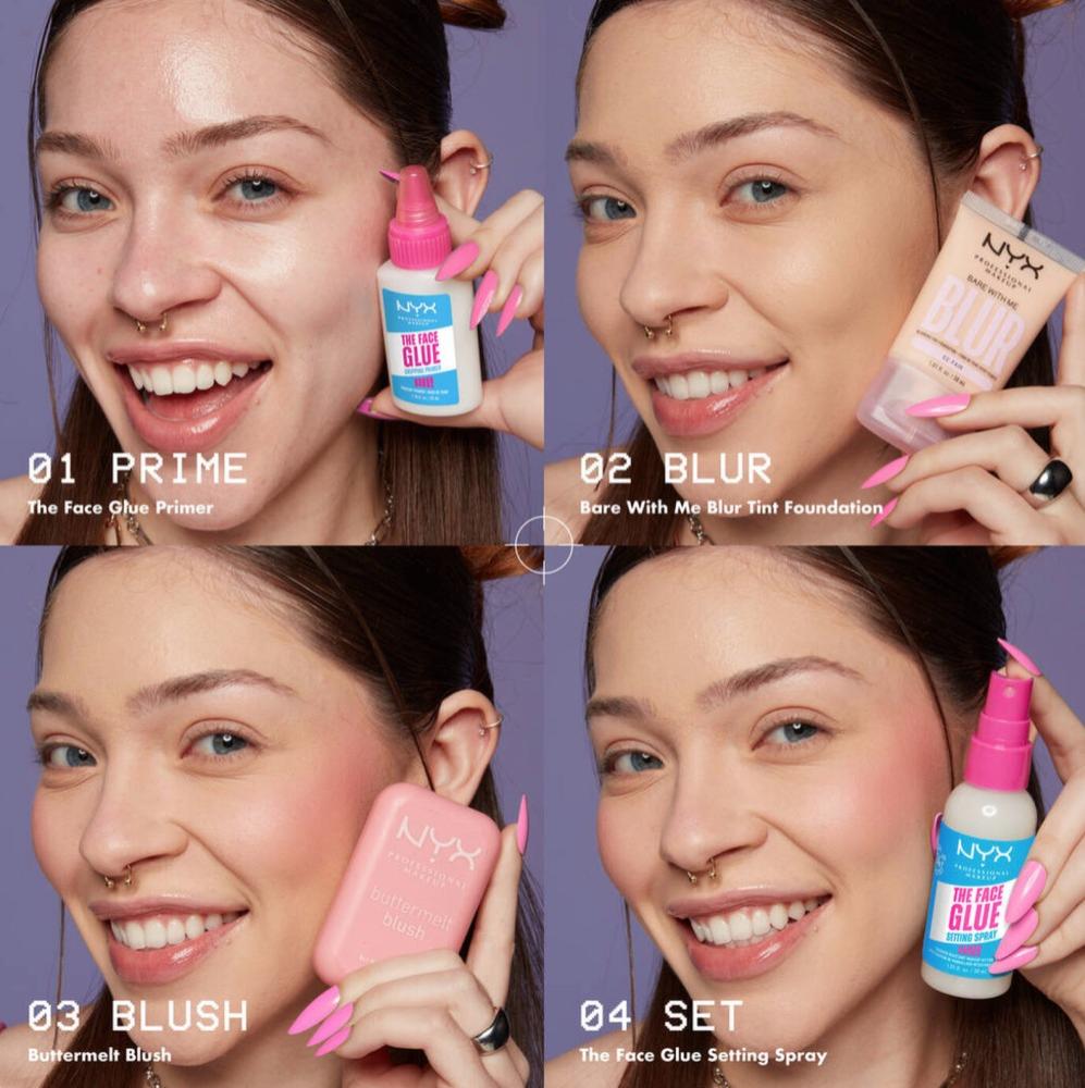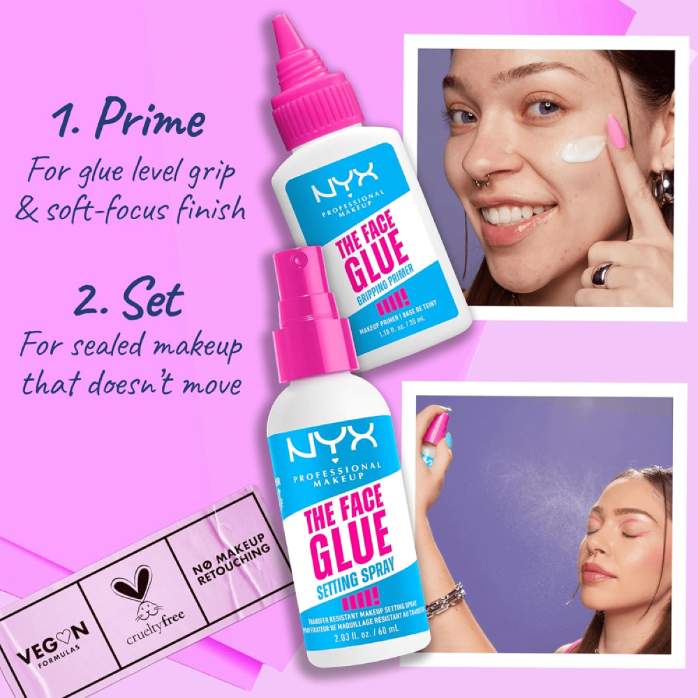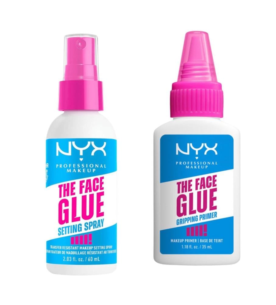 خلك مستعدة لأي طلعة، حفلة، أو يوم طويل بدون ما تفكرين في بهتان المكياج أو تحركه! مجموعة The Face Glue من NYX Professional Makeup تجمع لك اثنين من أقوى منتجات التثبيت، صممت لتقفل مكياجك في مكانه وكأنه ملصوق!